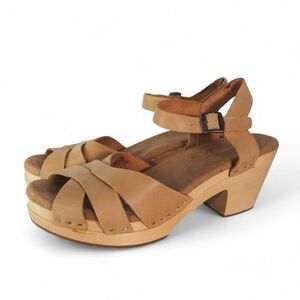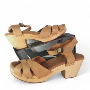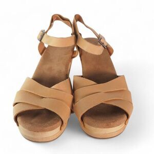Toms Beatrix Strappy Slingback Leather Clogs "Sandstorm Tan" Women's 8