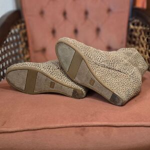 Chic Toms wedges with animal print. Ideal for adding flair to any outfit.