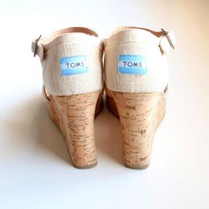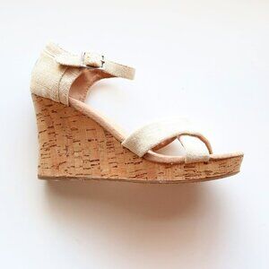 Toms Beige Canvas Ankle Strap Cork Platform Wedge Heel Sandals / Summer Shoes