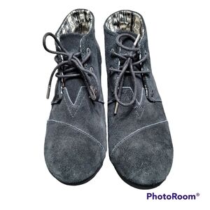 Toms black suede desert wedge bootie ( signs of wear and scuffs present see photos for details) Size: 9.5