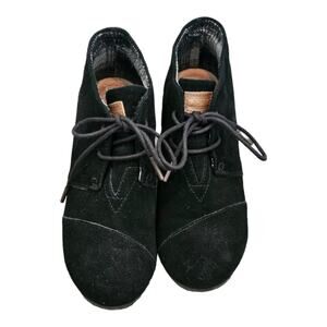 Toms Black Suede Wedge Booties Boots Women's Size 6.5