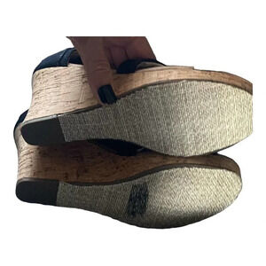 Toms Black Wedges Sandals Size 7.5 Open Toe Ankle Strap Heel Wedge Casual