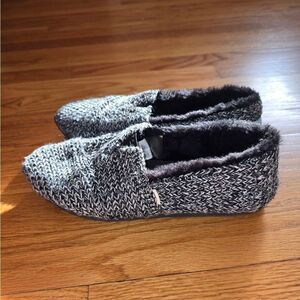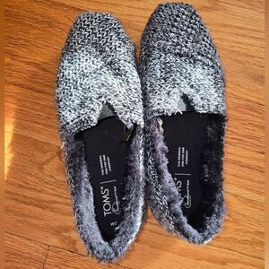 Toms Black And White Faux Furlined Espadrille Flats Womans Size 7