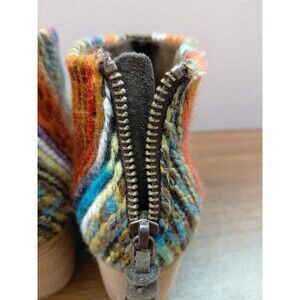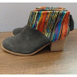 Toms Blanket Aztec Stripe Leila Brown Suede Western Boho Bootie Women's Size 7.5