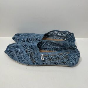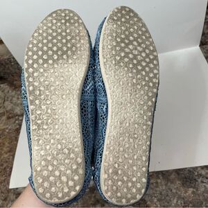 Gently worn women’s size 9.5 toms blue crochet causal loafers. Please review all photos for any signs of wear-pictured as is. Disclaimer: Any items with any wear/staining has not been treated, and unsure of ability to remove/treat condition. Comes from a smoke free home, bundle with other items to save & minimize shipping cost.