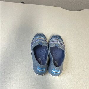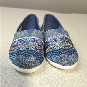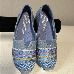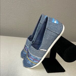 Experience the perfect blend of comfort and style with these Toms flats. Featuring a vibrant mix of blue and pink hues, these shoes boast a bohemian-inspired design with intricate patterns. Ideal for casual wear, they offer a snug fit with their classic slip-on silhouette.