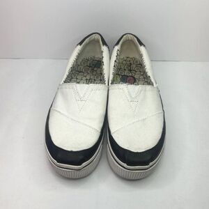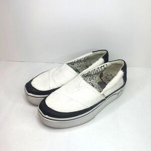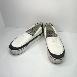 Toms Boardwalk Venice Canvas Platform Slip Ons Flats White Black Monogram Womens