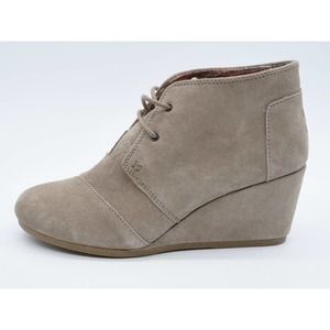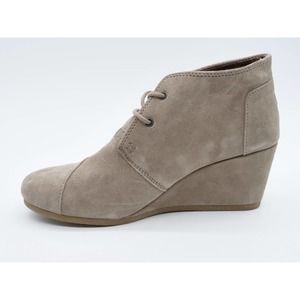 Toms Booties Womens 10 Beige Suede Desert Boot Wedge Heel Lace Up Round Toe