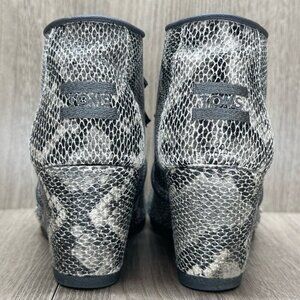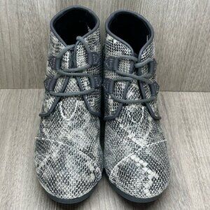 Toms Booties Womens Size 6.5 Kala Wedge Ankle Mid Heel Lace Up Snakeskin Gray