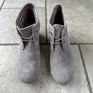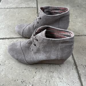 Toms Boots Womens 11 Ankle Desert Booties Wedge 10006257 Beige Suede Lace Up