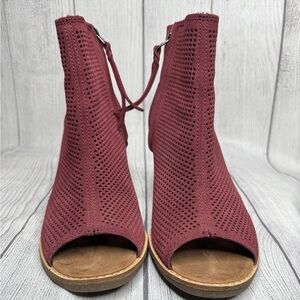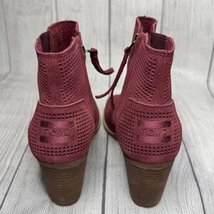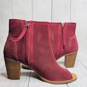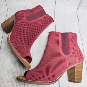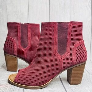 Toms Boots Womens 7.5 Majorca Peep Toe Perforated Ankle Bootie Oxblood Red Suede