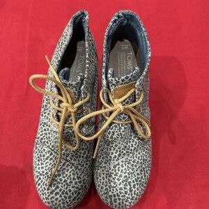 Step out in style with these Toms ankle boots, featuring an animal print design . Crafted from a durable textile material, these boots offer a comfortable fit with a rounded toe and flat sole. Perfect for casual outings, they effortlessly blend fashion and function.