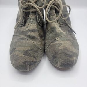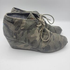 Tom's Camo print booties size 9W see pics for verification of size used has some wear see all pics for verification of size and condition