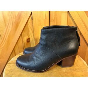 Toms Carpe Diem Ankle Boots Booties Shoes Size 5.5 Black Leather 2.25” heel back zippers