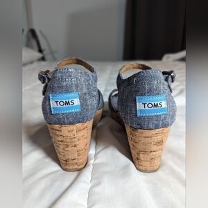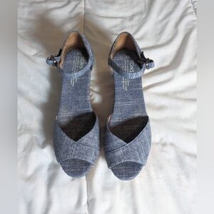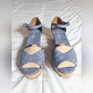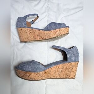 Toms Chambray Cork Bottom Wedge Peep toe Sandals Size 9