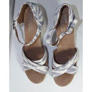 Toms Chambray Sandals 9.5 blue white canvas Peep-Toe Wedge adjustable straps