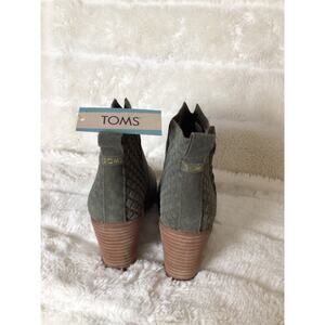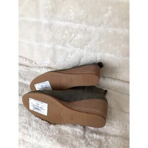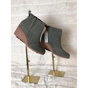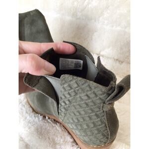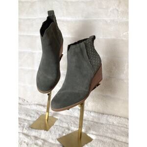 Tom’s Clare 6.5 Wedge Boot Suede Olive Green Pull On Leather Embossed Waffle