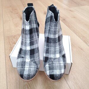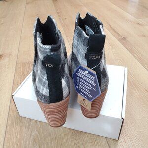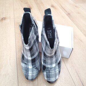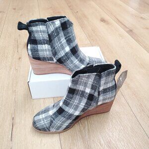 Toms Clare Bootie Wedge Ankle Black Grey Plaid Womens 7 EU 37.5 NWT Boots Preppy