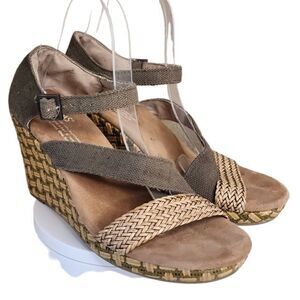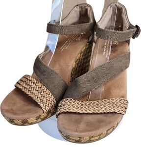 Toms- Clarissa Weaved Jute Wedges Olive Green Strappy, Size 7.5