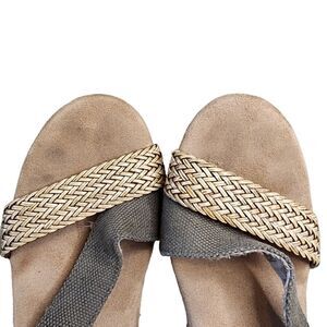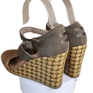 Toms- Clarissa Weaved Jute Wedges Olive Green Strappy, Size 7.5