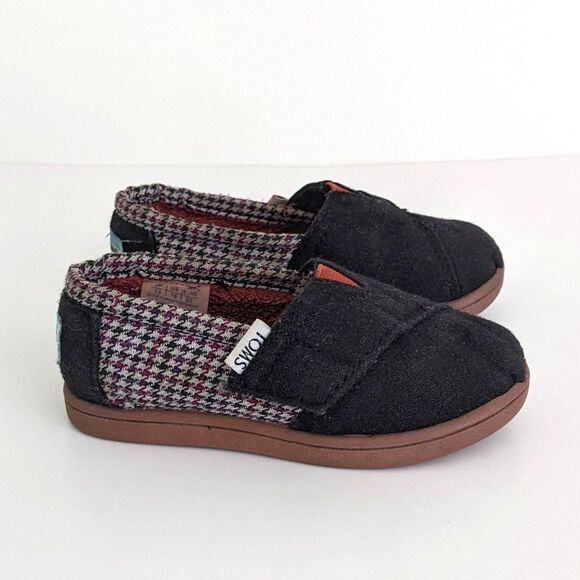 Toms Classic Alpargata Black Pink Herringbone Shoes Toddler Girl 6
