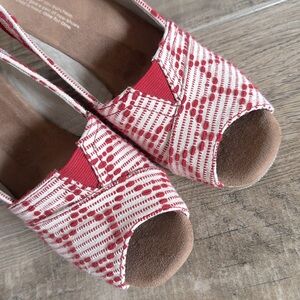 {Tom’s} Classic Red/Cream Gingham Wedge Sandals with Cork Heel | sz 9.5