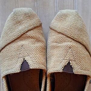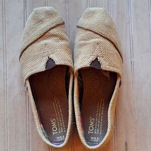 Tom's Classic Style Burlap Neutral Comfy Slip On Flats Boho Earthy Tan Shoes