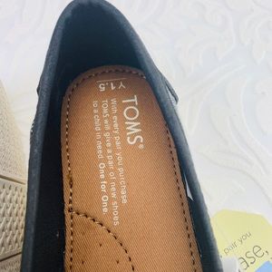 Toms youth Luca black striped chambray slip on sneakers. Multiple sizes available.