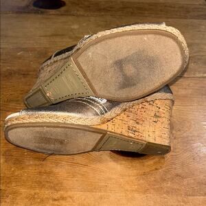 Toms Cork Open Toe Wedge Espadrille Sandals Silver Size 6.5