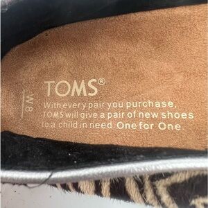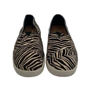 Toms Cream Brown Zebra Striped Calf Hair Loafers Size 8 Women’s