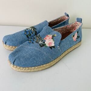Toms Deconstructed Alpargata Rope Floral Embroidered Espadrille Flat Size 9W