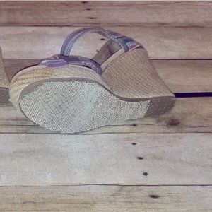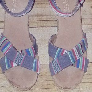 Tom's Denim Stripped Wedge Sandal Espadrille size 8 38.5 EU