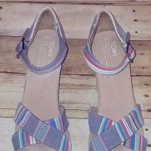 Ladies Tom's wedge in fun classic stripped colors, Chambray size 8. In excellent condition. Wore once and were to narrow for my foot