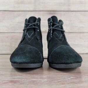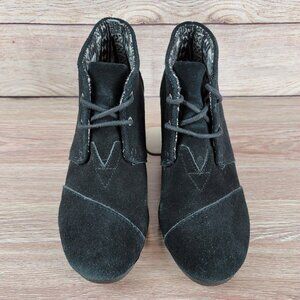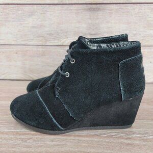 Toms Desert Hidden Wedge Ankle Booties Women's Size 7 Black Suede Heel Shoes