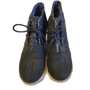 Toms Desert Lace Up Canvas Espadrille Wedge Ankle Boot Black Women's sz 6