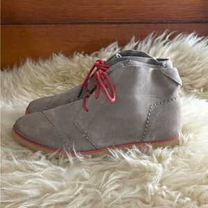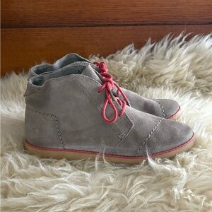 Toms Desert Tan Suede Ankle Boots with Orange Laces