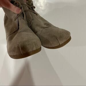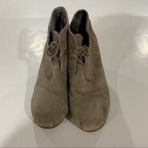 Toms Desert Taupe Suede Wedge Heel Lace Up Booties Size 9