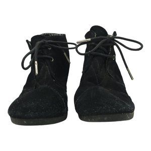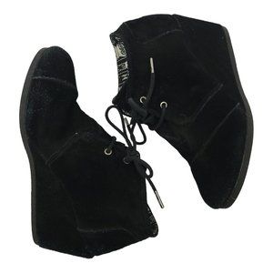 Toms Desert Wedge Ankle Boots US 7 UK 5 EU 37.5 Booties Black Suede Leather Lace Up