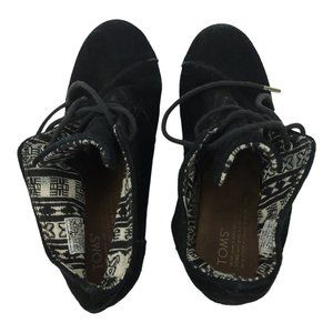 Toms Desert Wedge Ankle Boots US 7 EU 37.5 Booties Black Suede Leather Lace Up