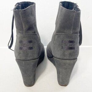 Enjoy the height of a wedge with the closed toe comfort of a suede bootie. Fashioned with a side zipper for each on and off, it's the simplest way to add a dash of chic to your everyday look. Suede upper with matching zipper pull. Tom's tonal heel patch. Soft suede insole with cushioned footbed.