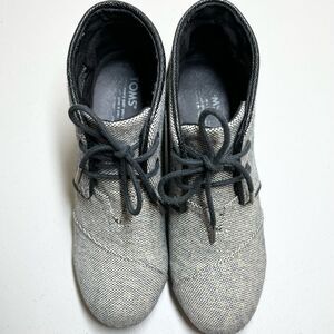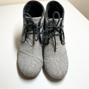 Toms Desert Wedge Metallic Linen Bootie, black/gold
