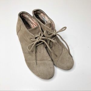 Toms Desert Wedge Suede Lace Up Booties Beige 7