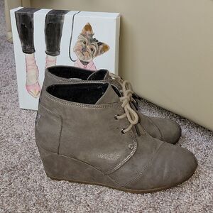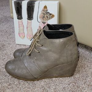 Toms Desert Wedge Heel Shimmer Suede Ankle Boot Booties 740810 Womens Size 8.5