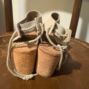 Toms Elba Desert Womens Sz 7 Beige Taupe Peep Toe Chunky Block Heel Sandals