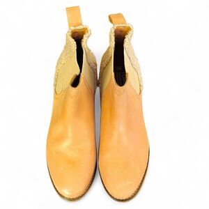 Toms Ella Chelsea Ankle Boot in Honey Leather Faux Shearling Size 7M