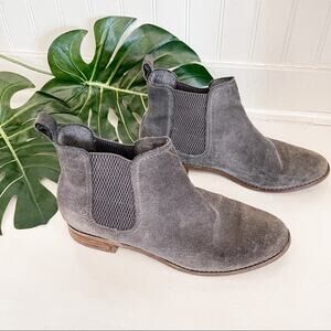 Details: Toms Ella Suede Ankle Boots - Size: W7.5 - Color: Gray - Forged iron grey suede upper - TOMS Chelsea boot - Twin elastic gore for easy on/off - Pull tab - Comfort insole - Stacked leather-wrapped heel - Rubber outsole for traction - Heel height: approx. 1”