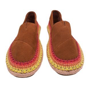 Toms Espadrilles Brown Suede Leather Slip On Shoes Flats Esparto Womens 6 EUC