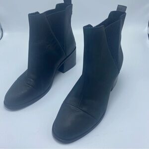 Toms Everly Black Nubuck Heeled Boot Square Block Heel. Chelsea- Inspired ankle boot. Heel 2 3/4. Size 9. Good used condition.
