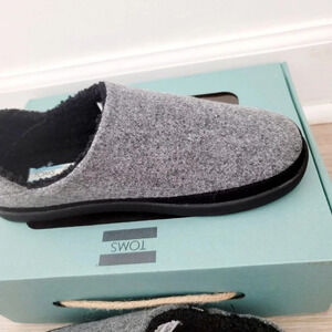 Toms Ezra Smoke Grey Repreve Felt Faux Fur Slip On Slippers House Shoes 6.5