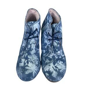 Toms Floral Lace-Up Wedge Heel Ankle Boot Blue and White Size 7.5 Medium